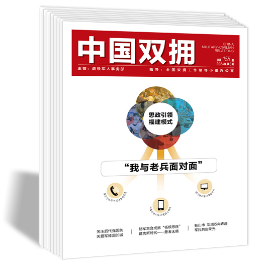 本刊是服务一体化国家战略体系,助力全国双拥模范城(县)创建、退役军人服务中心(站)专业宣传的主阵地和好帮手。是各地、各部门、各有关单位 “文化拥军”的真情馈赠。要保证各级党政领导、双拥工作成员单位、国防动员系统、优抚安置工作部门、双拥共建单位、相关社会组织等都能看到《中国双拥》杂志,扩大在全国双拥模范城(县)创建、退役军人服务中心(站)建设工作中的覆盖面,使《中国双拥》杂志覆盖到乡镇(街道)、社区、企事业单位、驻地部队、社会拥军单位等双拥工作的领域。